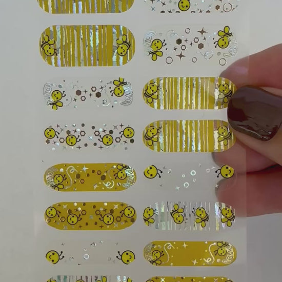 Size and press: Choose the correct size for your nail, gently peel it off and press onto your nails. If the size is too big, you can (gently) stretch the sticker out vertically to slim it in a bit, if it is too small you can stretch it horizontally to make it wider.