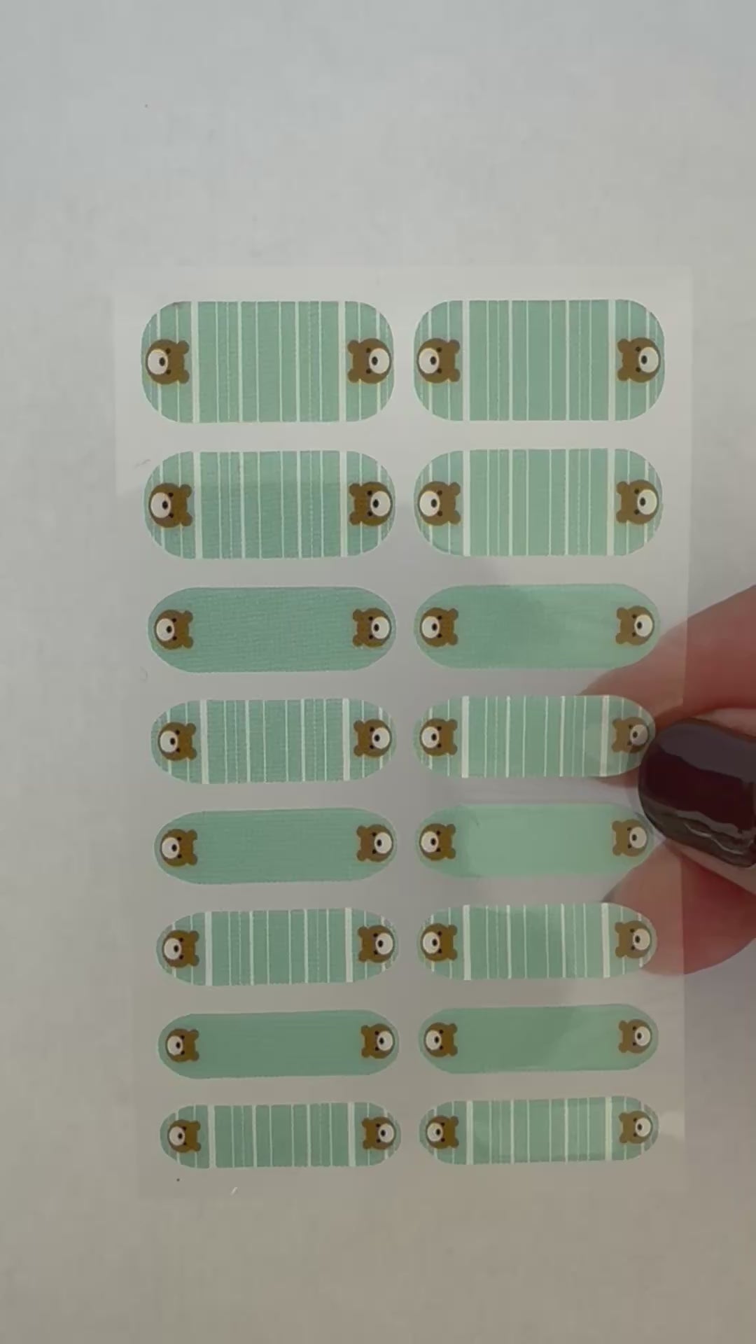 Size and press: Choose the correct size for your nail, gently peel it off and press onto your nails. If the size is too big, you can (gently) stretch the sticker out vertically to slim it in a bit, if it is too small you can stretch it horizontally to make it wider.